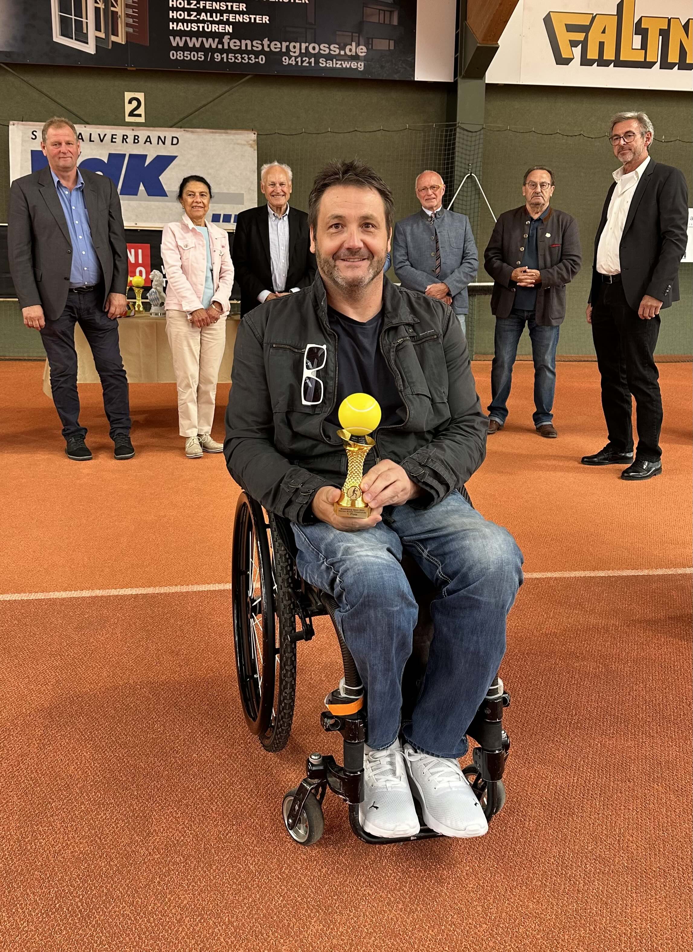In einem sehr spannenden Einzelfinale bezwang Taucher seinen Landsmann Josef Riegler (AUT) in drei Sätzen mit 6:1/4:6/6:2 und schnappte sich damit den Bayerischen Löwen des Ministerpräsidenten als Ehrenpreis. Im Doppel musste er mit seinem Teampartner Martin Hörzweber (AUT) ebenfalls in die Verlängerung. Aber auch hier triumphierte er am Ende vor einer tollen Zuschauerkulisse gegen das Duo Riegler/Legner mit 3:6/6:3/10:7. Geleitet wurden die Finalspiele von Stuhlschiedsrichterin Gudrun Peinze-Keller.