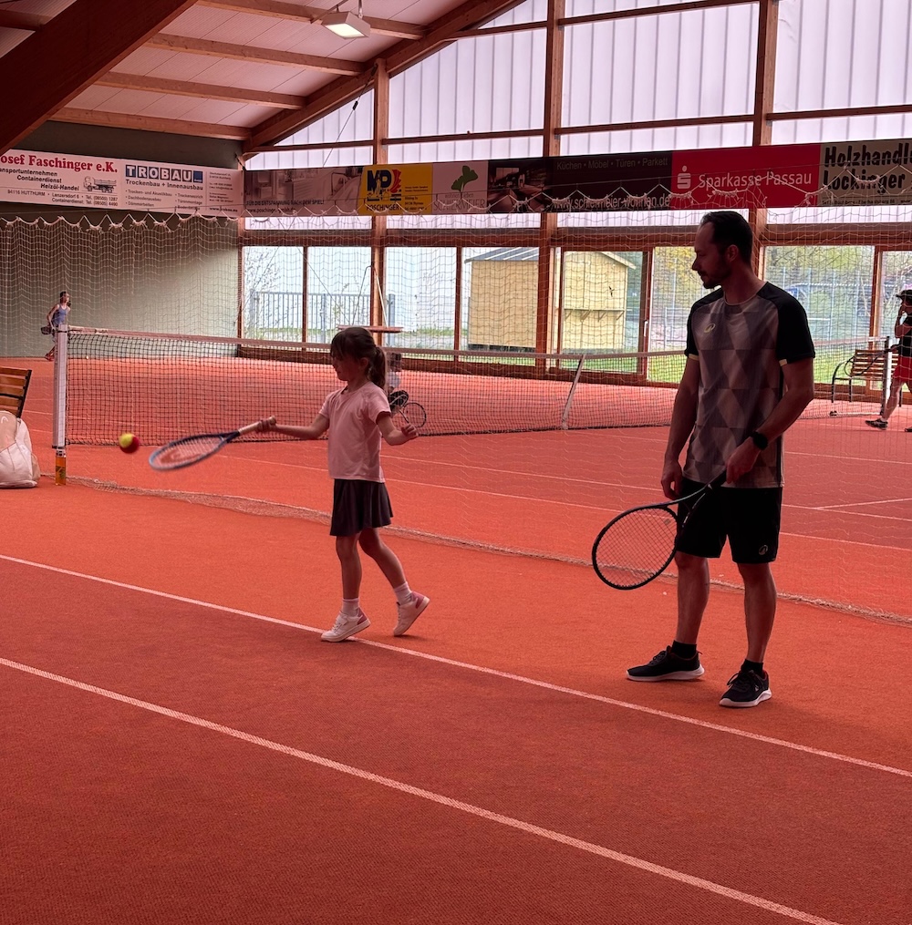 Am Samstag, den 18. April 2026, fand auf unserer Anlage ein Turnier für Groß und Klein statt. Über 30 Doppelpaarungen gingen an den Start und traten in einem außergewöhnlichen Turniermodus gegeneinander an, bei dem jeweils ein Kind gemeinsam mit einem Erwachsenen spielte.